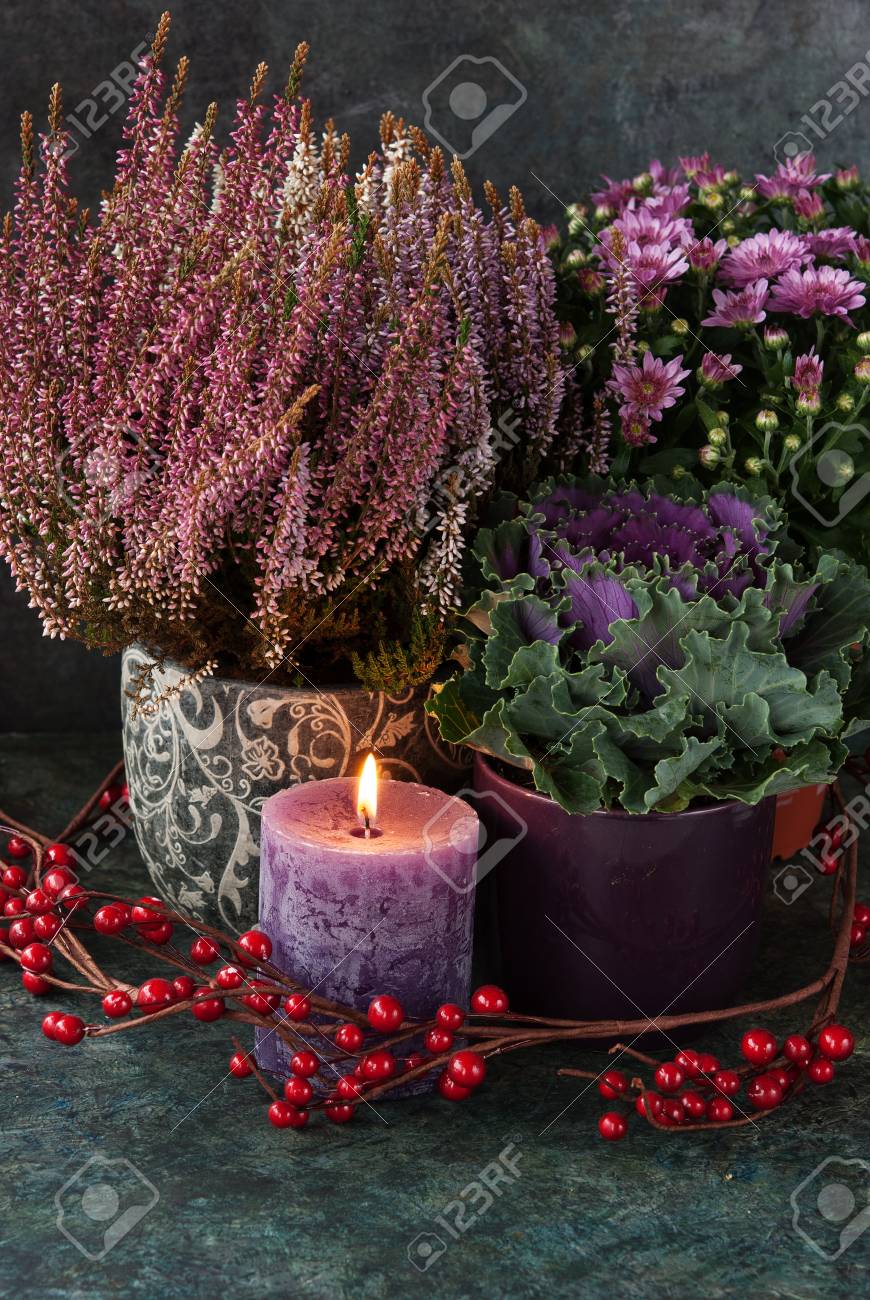 Autumn Decor At Home With A Candles And Autumn Flowers