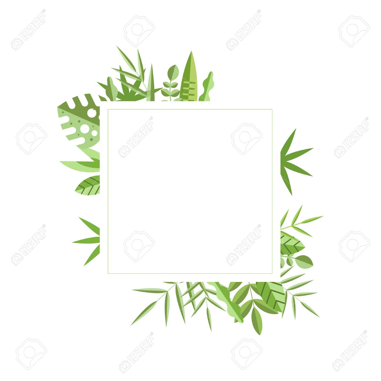 Square Frame With Green Leaves On Background Natural Border
